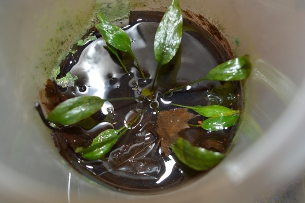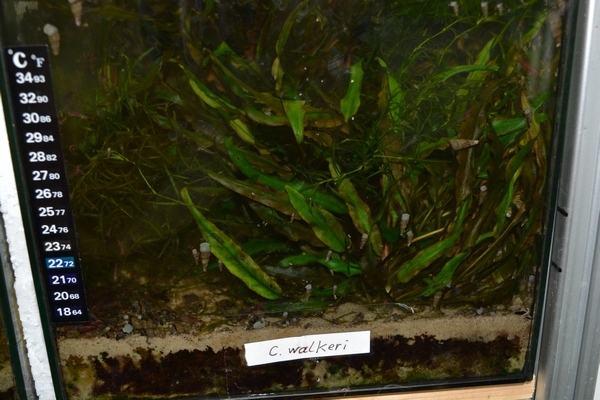 Auf Lehmboden wuchsen bei Walter nur C. walkeri und C. bangkaensis erfolgreich. C. fusca blieb auf Buchenlaub extrem klein und flach, bildete aber Ableger. Emers hatte Walter auch seine Probleme: C. schulzei verschwand nach einiger Zeit, C. zukali auf Buchenlauberde in1 bis 1,5 cm Osmosewasser bekam Ichthyo. Submers ließ sich C. usteriana prächtig vermehren.