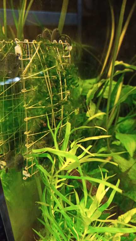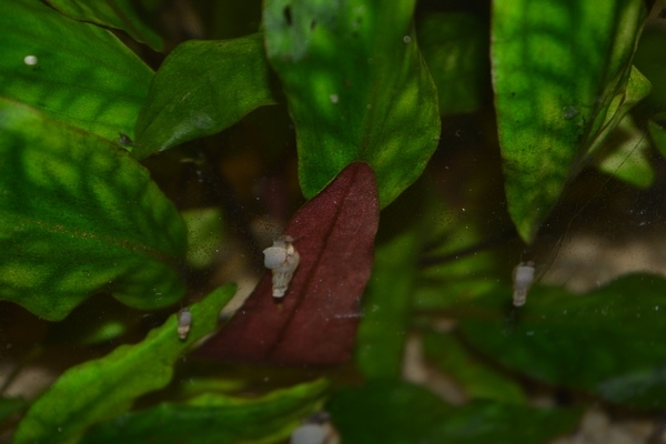 Des Öfteren musste Jochen schon Büschel von Hemianthus montecarlo an der Wasseroberfläche treibend aus dem Becken fischen. Er meint aber, den Übeltäter schon ausgemacht zu haben: Napfschnecken beziehungsweise schwarze Helmschnecken, denen es diese Pflanze besonders angetan hat.
