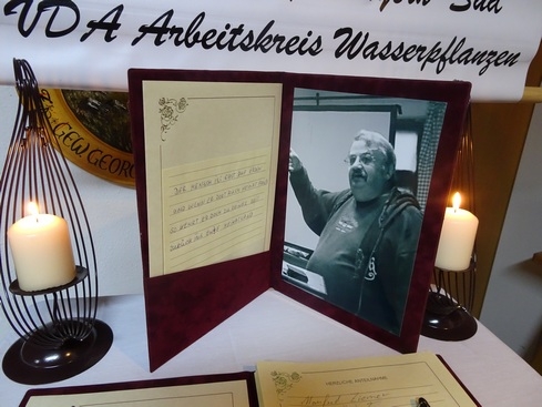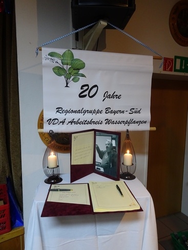 Trotz der Trauer ging es danach mit dem eigentlichen Programm weiter. Hans-Jochen Frank, Arbeitskreis-Mitglied und Kassier der Regionalgruppe, gewährte den knapp 20 Anwesenden in der Vereinsgaststätte „Amperlust“ in Esting einen Einblick in seine pflanzenaquaristischen Aktivitäten im vergangenen Jahr sowohl im Nanoaquarisitikbereich als auch in seiner Funktion als Züchter von Pflanzen in Emerskulturen für die Auffrischung in seinem 1-Meter-Aquarium-Aquarium. Er ging dabei auf die verschiedenen von ihm verwendeten Pflanzen im Detail ein, zeigte überraschende Kniffe und Tricks, berichtete über Erfolge bei der Vermehrung von Pflanzen beschrieb aber auch Probleme mit auftretenden Pflanzen- und Fischkrankheiten. Tolle Fotos von wunderschönen Blüten einiger Wasserpflanzen in Emers-Kultur rundeten diesen gelungenen Vortrag ab.