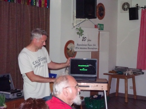 Zunächst präsentierte Walter auf einigen Fotos seine Aquarienanlage, die er als Züchter diverser Fischarten technisch auf dem neuesten Stand hält, zum Beispiel durch eine Profi-Osmoseanlage, sowie Beleuchtung mittels LED-Stripes.